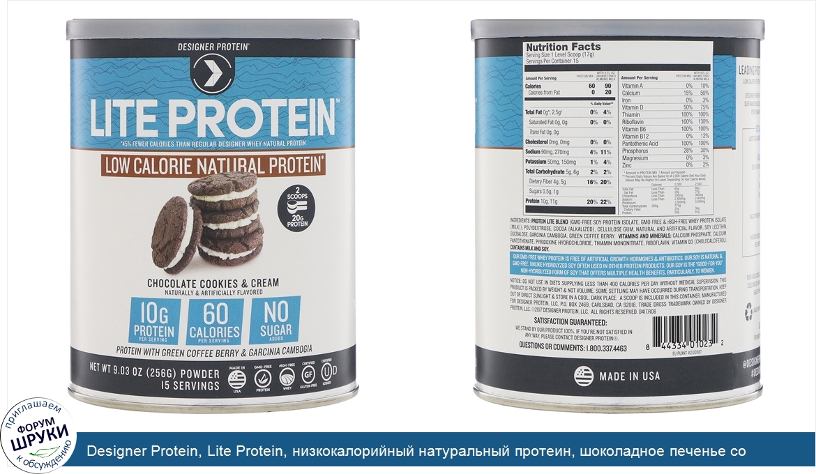 Друзья, если у вас есть отзыв/дополнение/комментарий/вопрос относительно Designer Protein, Lite Protein, низкокалорийный натуральный протеин, шоколадное печенье со сливками, 9,03 унц. (256 г) - напишите его ответом в эту тему (это будет полезно всему сообществу в целом и вам в отдельности).
