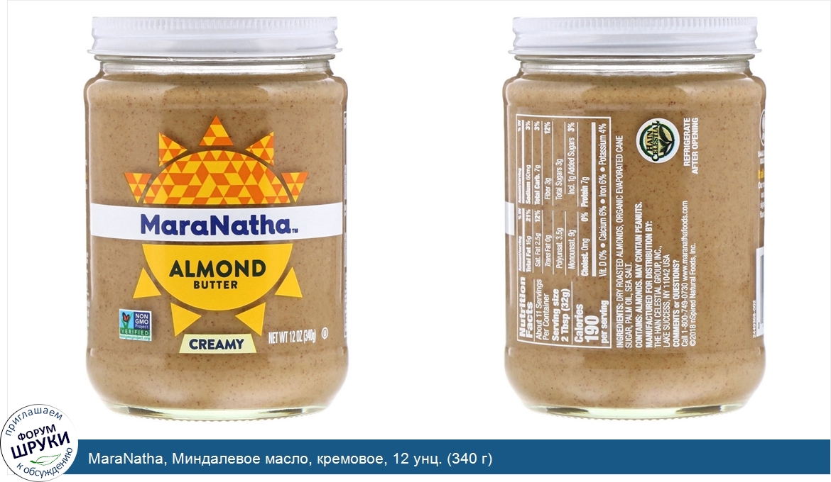 Друзья, если у вас есть отзыв/дополнение/комментарий/вопрос относительно MaraNatha, Миндалевое масло, кремовое, 12 унц. (340 г) - напишите его ответом в эту тему (это будет полезно всему сообществу в целом и вам в отдельности).