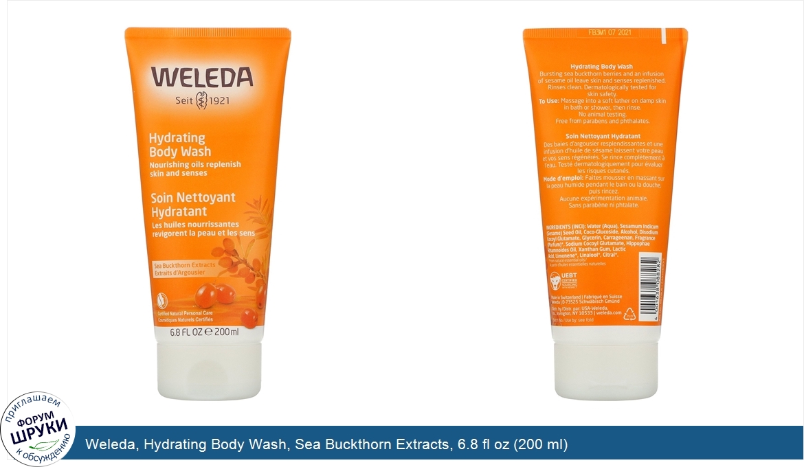 Друзья, если у вас есть отзыв/дополнение/комментарий/вопрос относительно Weleda, Hydrating Body Wash, Sea Buckthorn Extracts, 6.8 fl oz (200 ml) - напишите его ответом в эту тему (это будет полезно всему сообществу в целом и вам в отдельности).