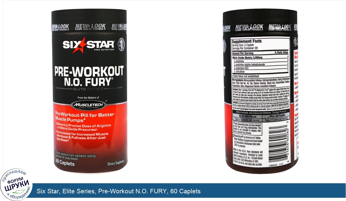 Друзья, если у вас есть отзыв/дополнение/комментарий/вопрос относительно Six Star, Elite Series, Pre-Workout N.O. FURY, 60 Caplets - напишите его ответом в эту тему (это будет полезно всему сообществу в целом и вам в отдельности).