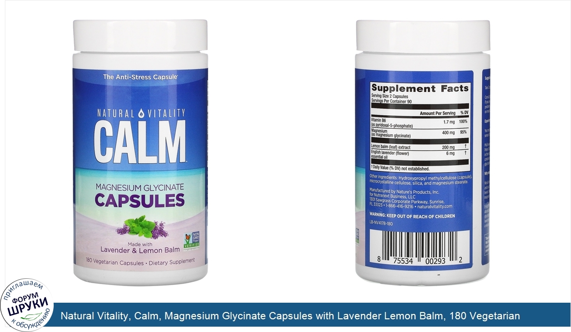 Друзья, если у вас есть отзыв/дополнение/комментарий/вопрос относительно Natural Vitality, Calm, Magnesium Glycinate Capsules with Lavender Lemon Balm, 180 Vegetarian Capsules - напишите его ответом в эту тему (это будет полезно всему сообществу в целом и вам в отдельности).