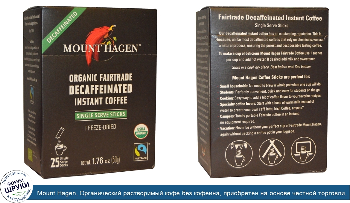Друзья, если у вас есть отзыв/дополнение/комментарий/вопрос относительно Mount Hagen, Органический растворимый кофе без кофеина, приобретен на основе честной торговли, 25 упаковок (50 г) - напишите его ответом в эту тему (это будет полезно всему сообществу в целом и вам в отдельности).