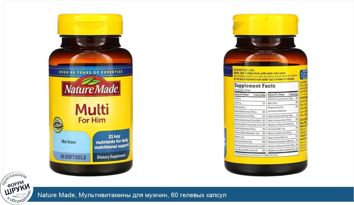 Друзья, если у вас есть отзыв/дополнение/комментарий/вопрос относительно Nature Made, Мультивитамины для мужчин, 60 гелевых капсул - напишите его ответом в эту тему (это будет полезно всему сообществу в целом и вам в отдельности).
