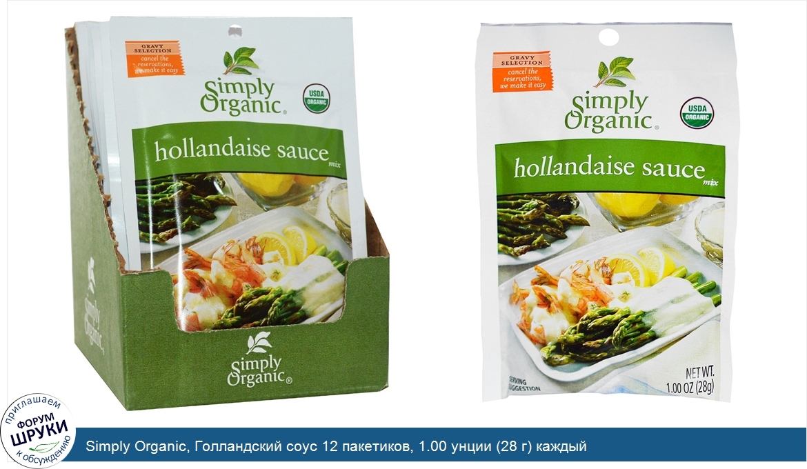 Simply Organic, Голландский соус 12 пакетиков, 1.00 унции (28 г) каждый