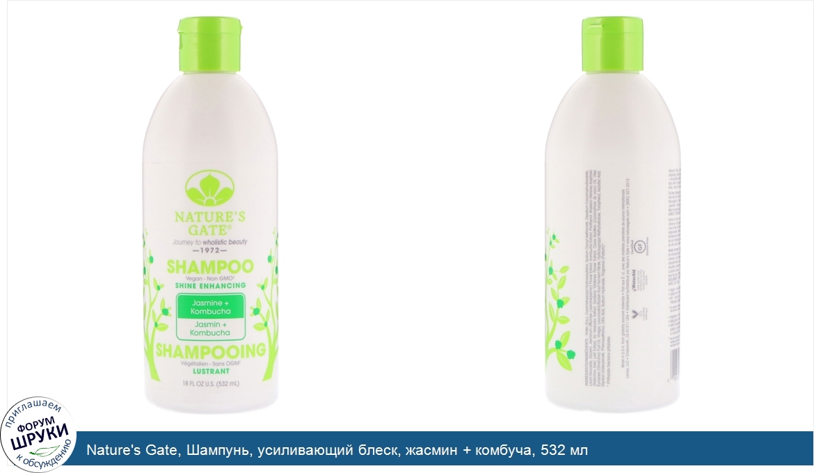 ru Nature's Gate, Шампунь, усиливающий блеск, жасмин + комбуча, 532 мл