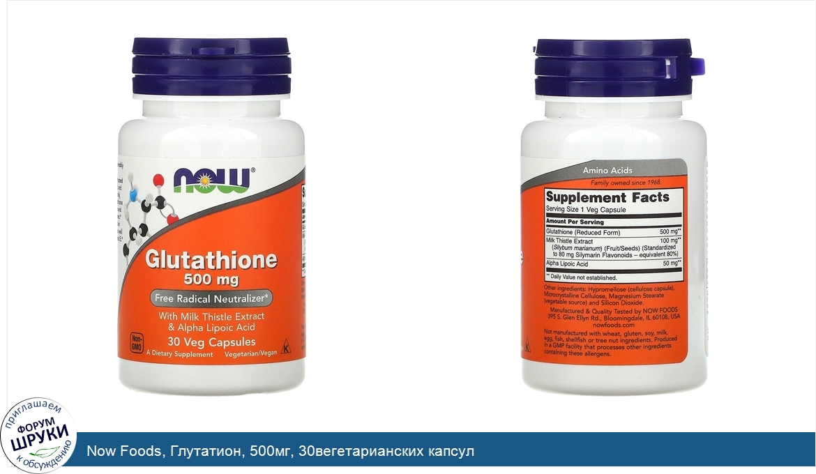 ru Now Foods, Глутатион, 500мг, 30вегетарианских капсул