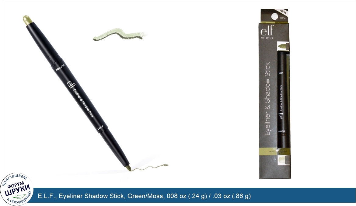 E.L.F., Eyeliner Shadow Stick, Green/Moss, 008 oz (.24 g) / .03 oz (.86 g)