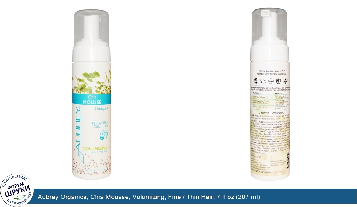 Aubrey Organics, Chia Mousse, Volumizing, Fine / Thin Hair, 7 fl oz (207 ml)
