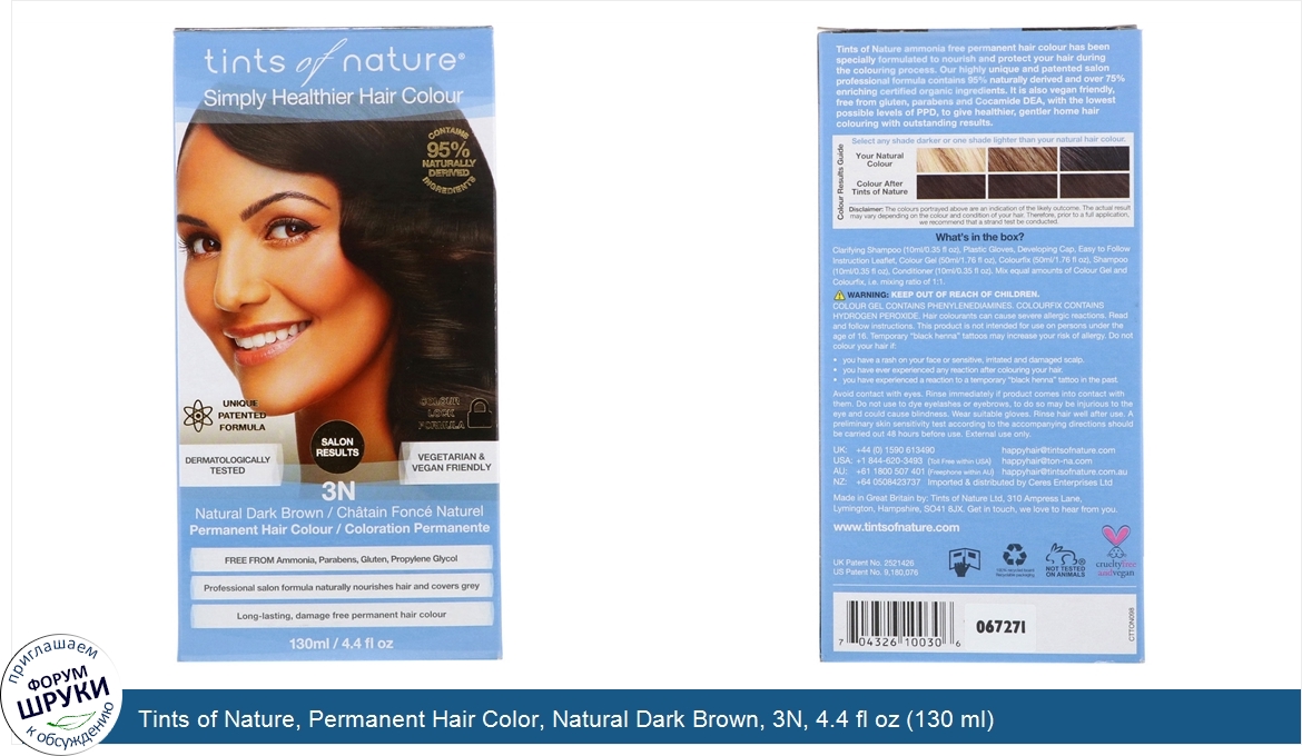 Друзья, если у вас есть отзыв/дополнение/комментарий/вопрос относительно Tints of Nature, Permanent Hair Color, Natural Dark Brown, 3N, 4.4 fl oz (130 ml) - напишите его ответом в эту тему (это будет полезно всему сообществу в целом и вам в отдельности).
