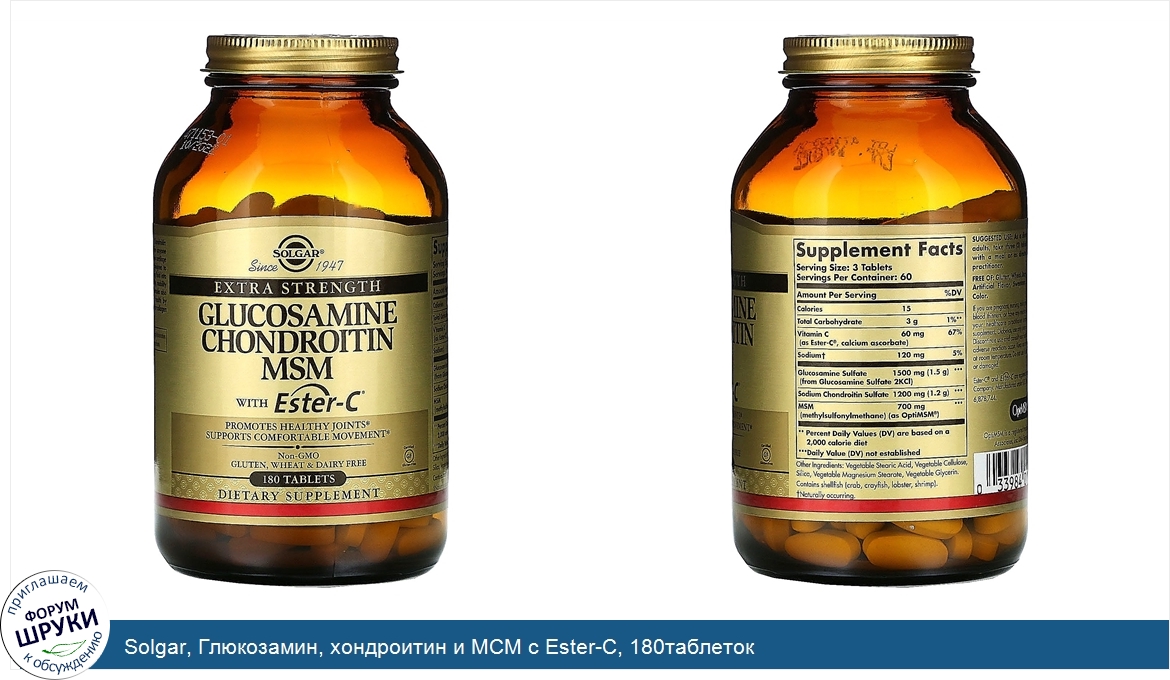 Друзья, если у вас есть отзыв/дополнение/комментарий/вопрос относительно Solgar, Глюкозамин, хондроитин и МСМ с Ester-C, 180таблеток - напишите его ответом в эту тему (это будет полезно всему сообществу в целом и вам в отдельности).