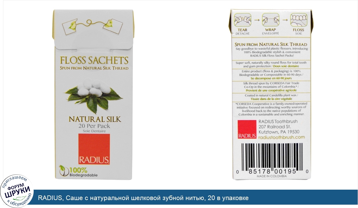 ru RADIUS, Саше с натуральной шелковой зубной нитью, 20 в упаковке