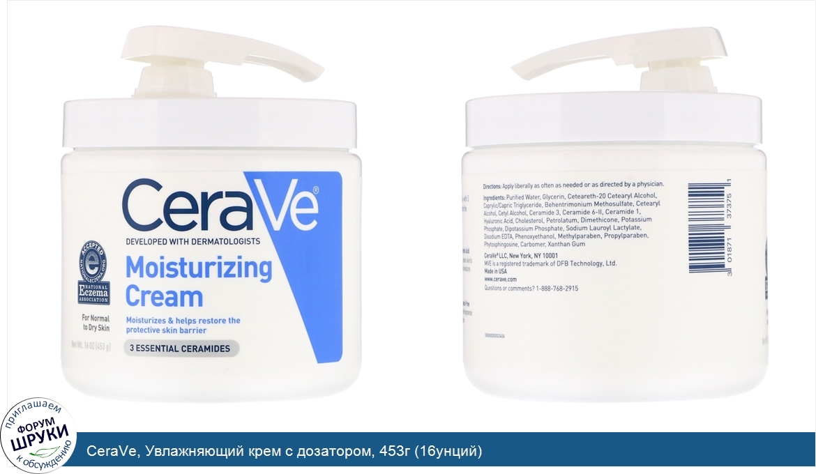 Друзья, если у вас есть отзыв/дополнение/комментарий/вопрос относительно CeraVe, Увлажняющий крем с дозатором, 453г (16унций) - напишите его ответом в эту тему (это будет полезно всему сообществу в целом и вам в отдельности).