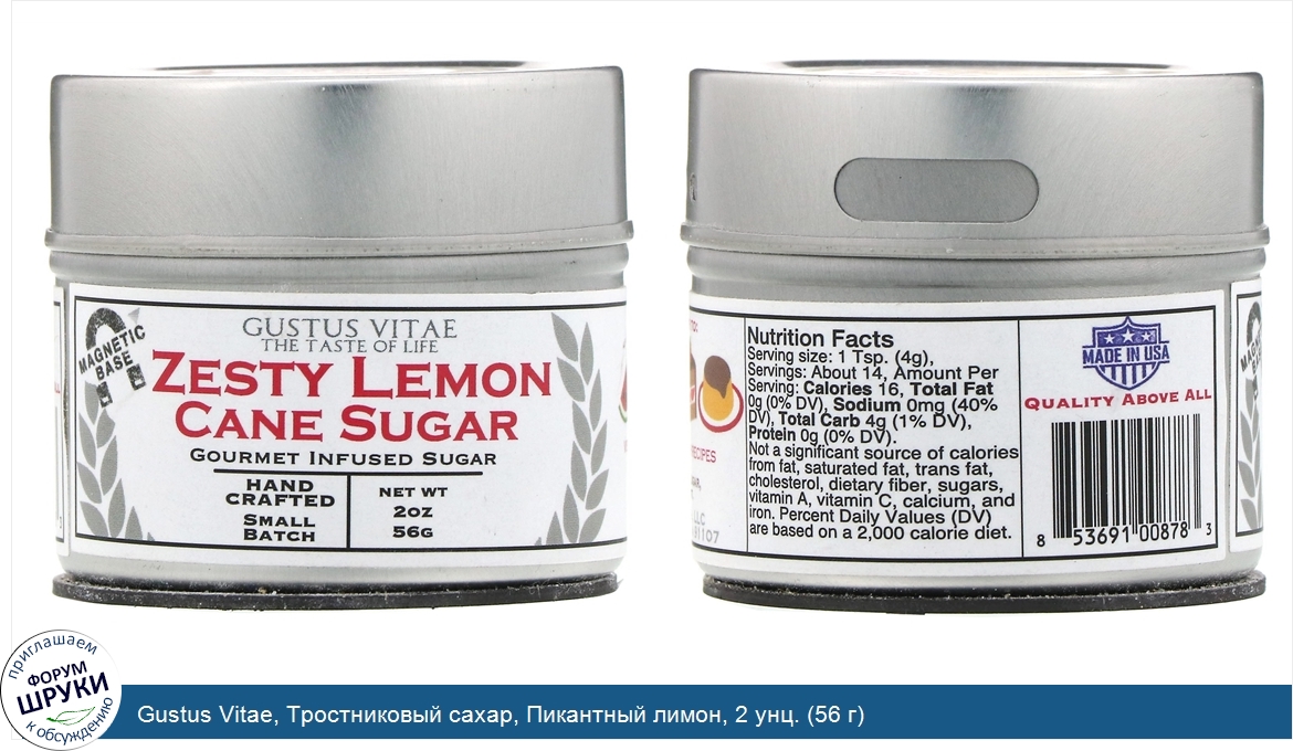Друзья, если у вас есть отзыв/дополнение/комментарий/вопрос относительно Gustus Vitae, Тростниковый сахар, Пикантный лимон, 2 унц. (56 г) - напишите его ответом в эту тему (это будет полезно всему сообществу в целом и вам в отдельности).