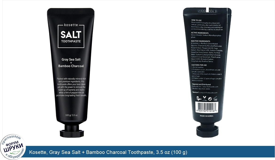 Kosette, Gray Sea Salt + Bamboo Charcoal Toothpaste, 3.5 oz (100 g)