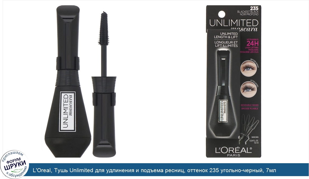 ru L'Oreal, Тушь Unlimited для удлинения и подъема ресниц, оттенок 235 угольно-черный, 7мл