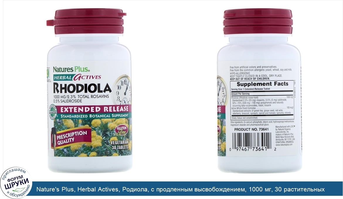 Друзья, если у вас есть отзыв/дополнение/комментарий/вопрос относительно Nature's Plus, Herbal Actives, Родиола, с продленным высвобождением, 1000 мг, 30 растительных таблеток - напишите его ответом в эту тему (это будет полезно всему сообществу в целом и вам в отдельности).