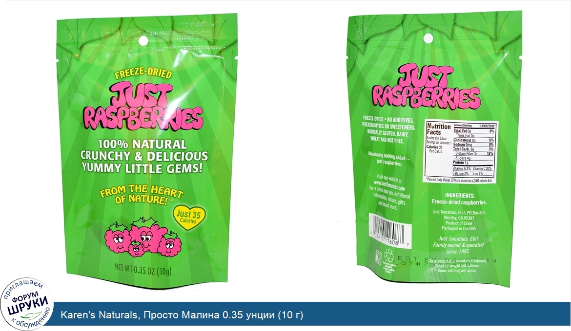 Друзья, если у вас есть отзыв/дополнение/комментарий/вопрос относительно Karen's Naturals, Просто Малина 0.35 унции (10 г) - напишите его ответом в эту тему (это будет полезно всему сообществу в целом и вам в отдельности).
