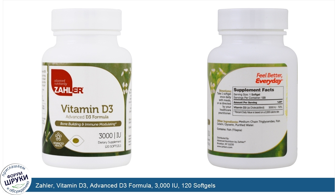 Друзья, если у вас есть отзыв/дополнение/комментарий/вопрос относительно Zahler, Vitamin D3, Advanced D3 Formula, 3,000 IU, 120 Softgels - напишите его ответом в эту тему (это будет полезно всему сообществу в целом и вам в отдельности).