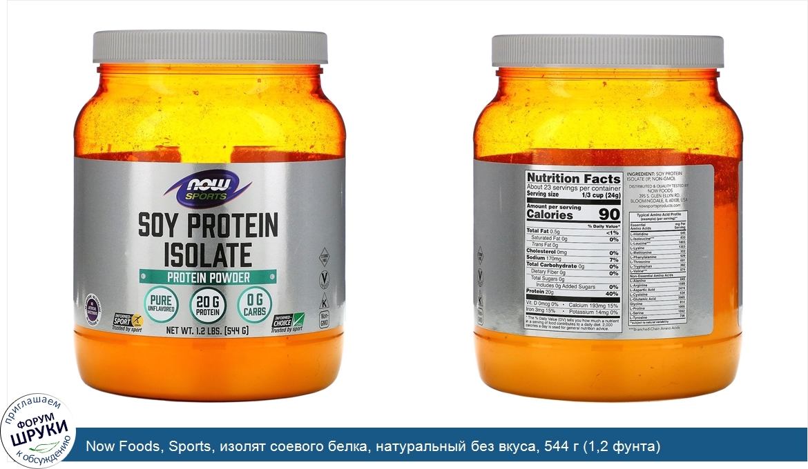 Друзья, если у вас есть отзыв/дополнение/комментарий/вопрос относительно Now Foods, Sports, изолят соевого белка, натуральный без вкуса, 544 г (1,2 фунта) - напишите его ответом в эту тему (это будет полезно всему сообществу в целом и вам в отдельности).