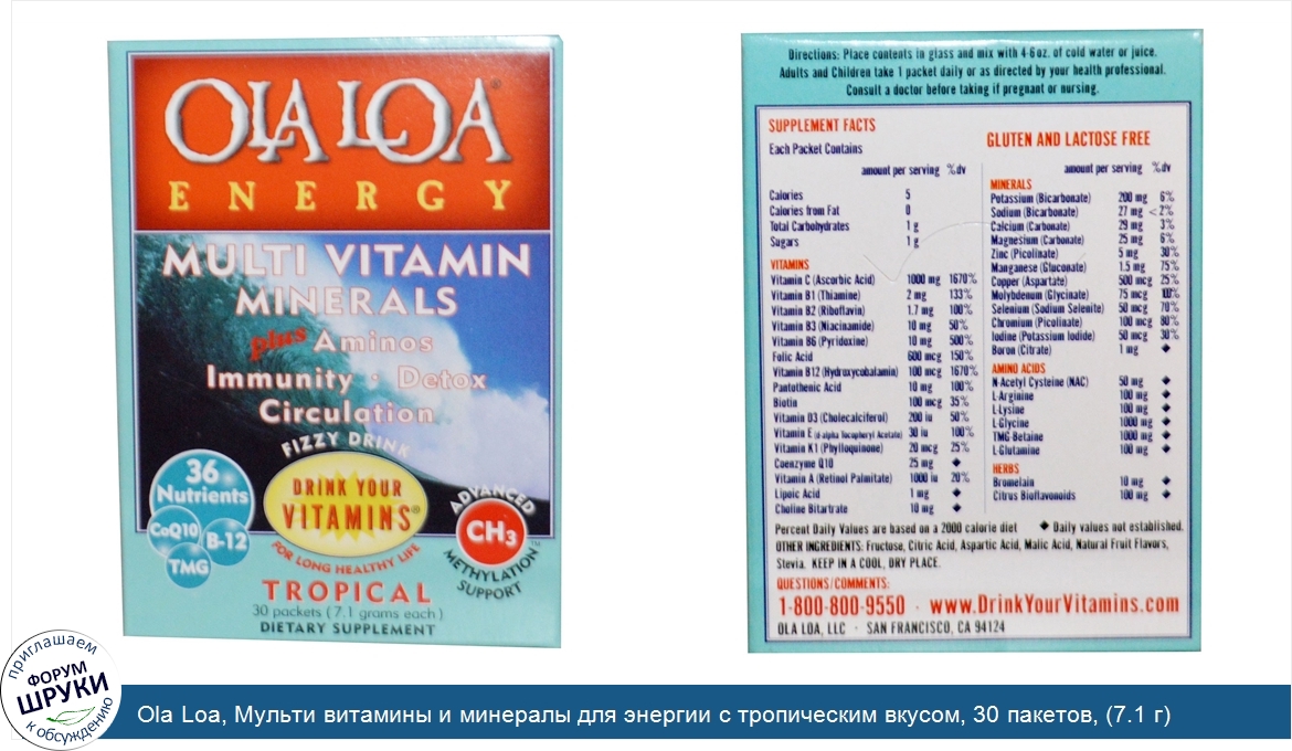 Друзья, если у вас есть отзыв/дополнение/комментарий/вопрос относительно Ola Loa, Мульти витамины и минералы для энергии с тропическим вкусом, 30 пакетов, (7.1 г) каждый - напишите его ответом в эту тему (это будет полезно всему сообществу в целом и вам в отдельности).