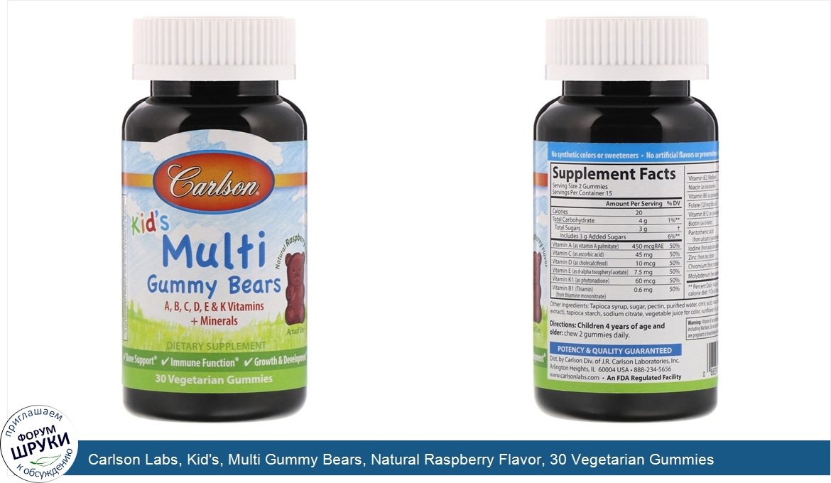 Друзья, если у вас есть отзыв/дополнение/комментарий/вопрос относительно Carlson Labs, Kid's, Multi Gummy Bears, Natural Raspberry Flavor, 30 Vegetarian Gummies - напишите его ответом в эту тему (это будет полезно всему сообществу в целом и вам в отдельности).