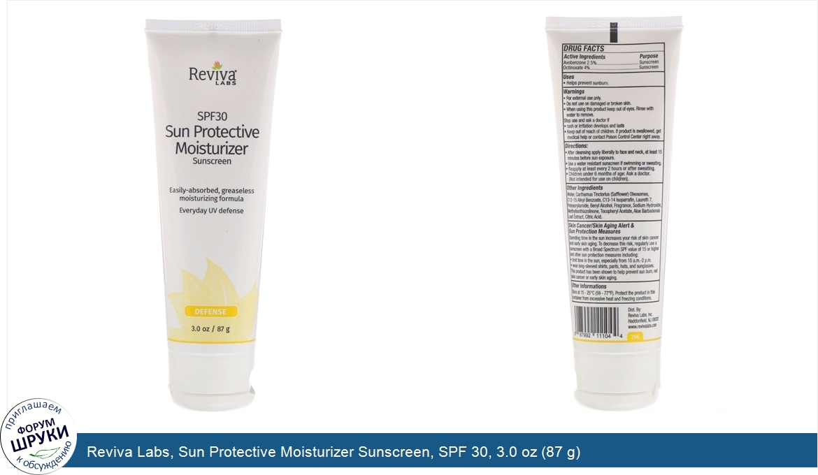Друзья, если у вас есть отзыв/дополнение/комментарий/вопрос относительно Reviva Labs, Sun Protective Moisturizer Sunscreen, SPF 30, 3.0 oz (87 g) - напишите его ответом в эту тему (это будет полезно всему сообществу в целом и вам в отдельности).