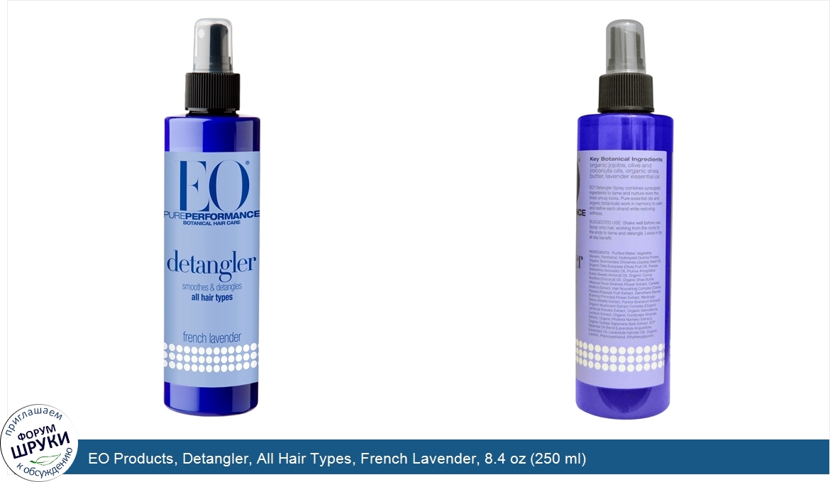 Друзья, если у вас есть отзыв/дополнение/комментарий/вопрос относительно EO Products, Detangler, All Hair Types, French Lavender, 8.4 oz (250 ml) - напишите его ответом в эту тему (это будет полезно всему сообществу в целом и вам в отдельности).