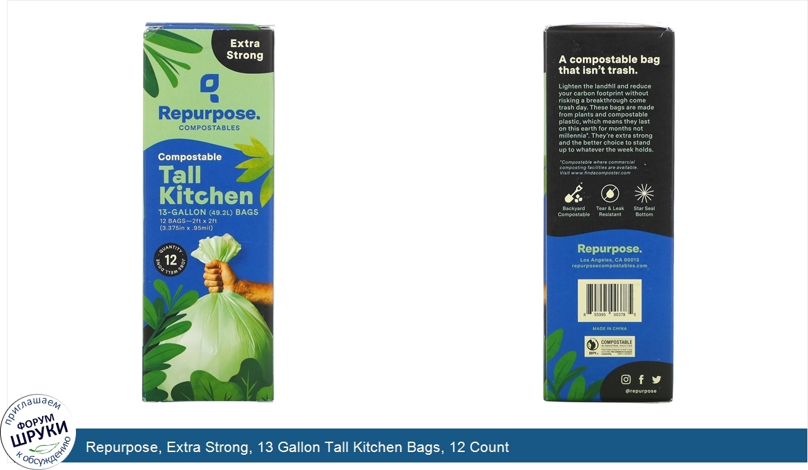 Друзья, если у вас есть отзыв/дополнение/комментарий/вопрос относительно Repurpose, Extra Strong, 13 Gallon Tall Kitchen Bags, 12 Count - напишите его ответом в эту тему (это будет полезно всему сообществу в целом и вам в отдельности).