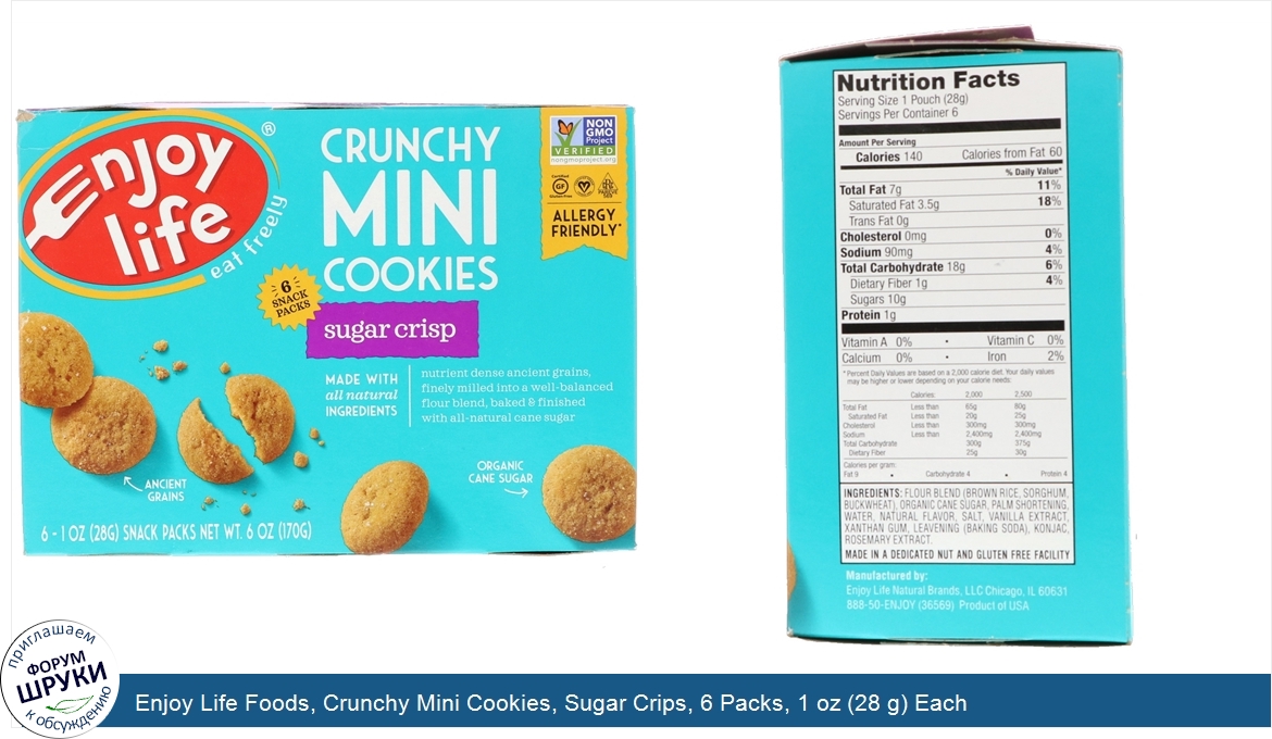 Enjoy Life Foods, Crunchy Mini Cookies, Sugar Crips, 6 Packs, 1 oz (28 g) Each