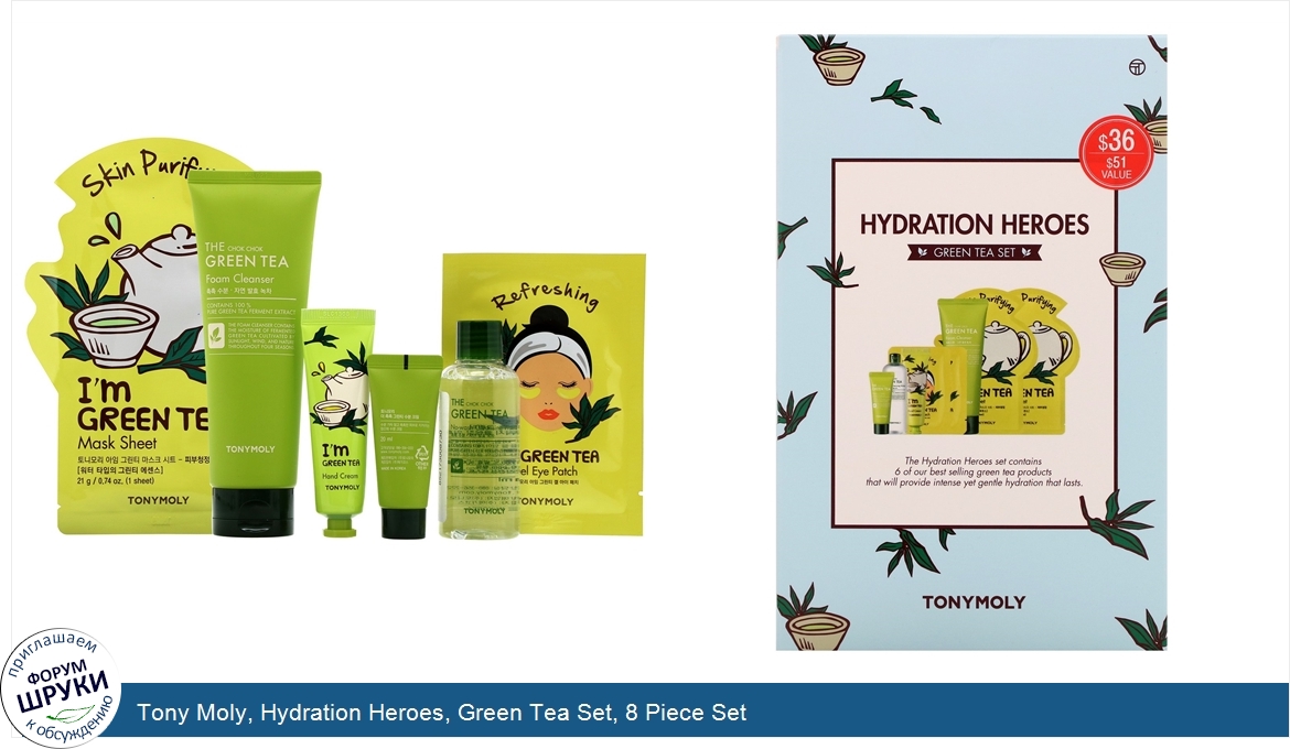 Друзья, если у вас есть отзыв/дополнение/комментарий/вопрос относительно Tony Moly, Hydration Heroes, Green Tea Set, 8 Piece Set - напишите его ответом в эту тему (это будет полезно всему сообществу в целом и вам в отдельности).