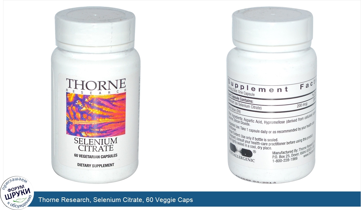 Thorne Research, Selenium Citrate, 60 Veggie Caps