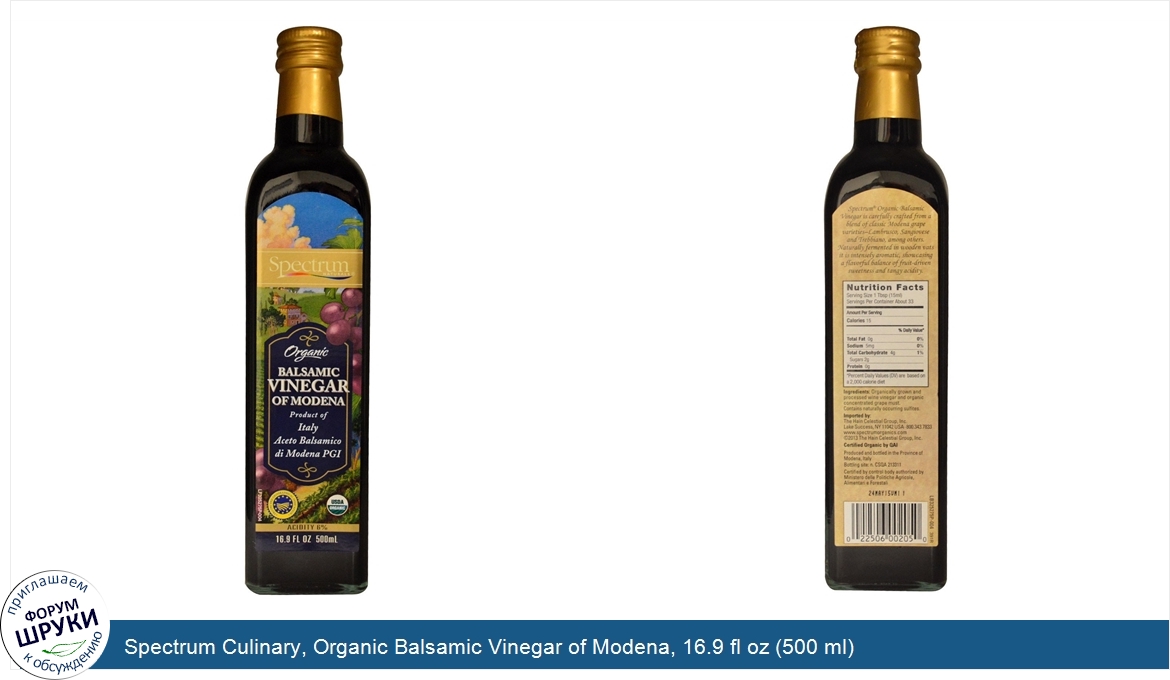 Друзья, если у вас есть отзыв/дополнение/комментарий/вопрос относительно Spectrum Culinary, Organic Balsamic Vinegar of Modena, 16.9 fl oz (500 ml) - напишите его ответом в эту тему (это будет полезно всему сообществу в целом и вам в отдельности).