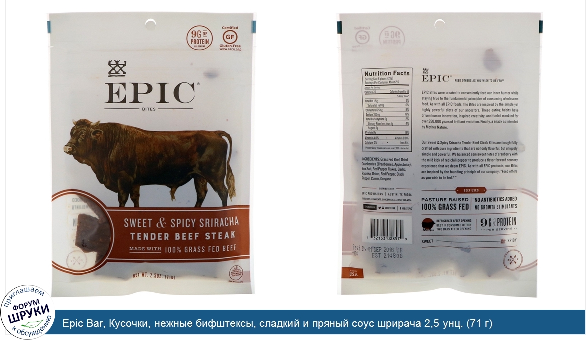 Друзья, если у вас есть отзыв/дополнение/комментарий/вопрос относительно Epic Bar, Кусочки, нежные бифштексы, сладкий и пряный соус шрирача 2,5 унц. (71 г) - напишите его ответом в эту тему (это будет полезно всему сообществу в целом и вам в отдельности).