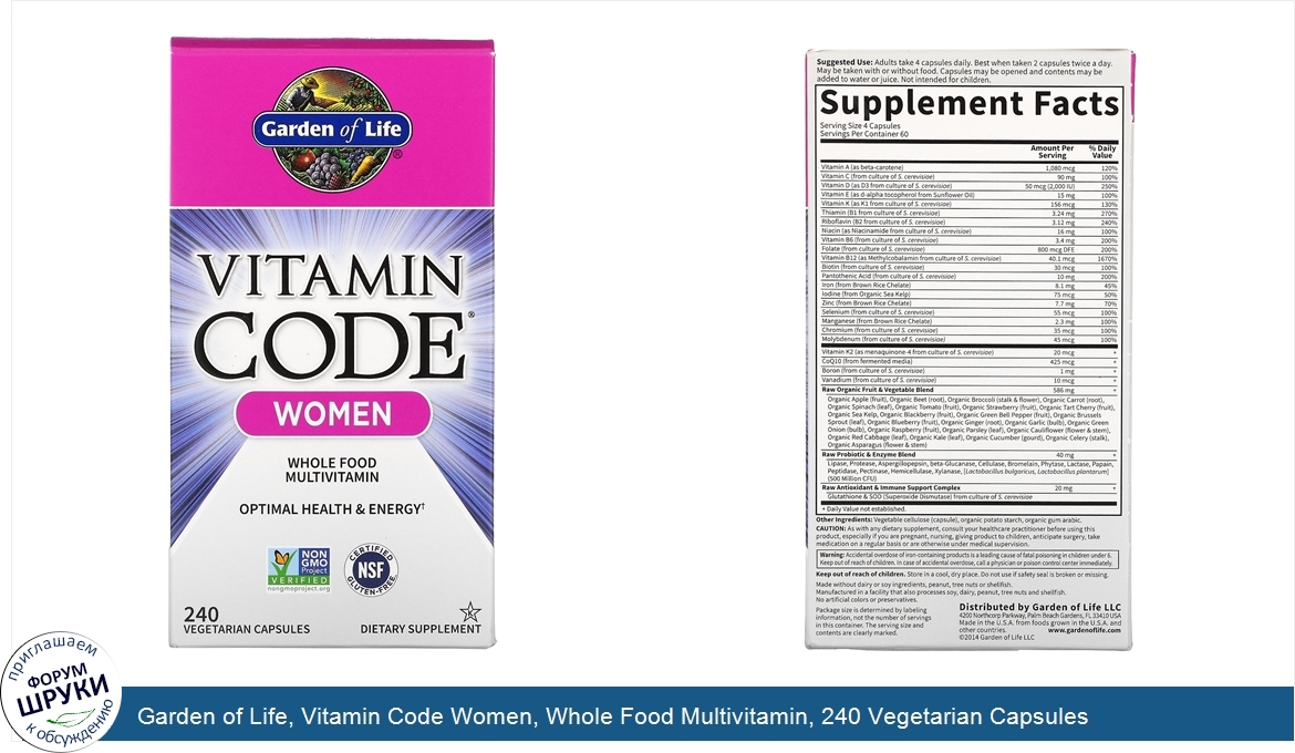 Друзья, если у вас есть отзыв/дополнение/комментарий/вопрос относительно Garden of Life, Vitamin Code Women, Whole Food Multivitamin, 240 Vegetarian Capsules - напишите его ответом в эту тему (это будет полезно всему сообществу в целом и вам в отдельности).
