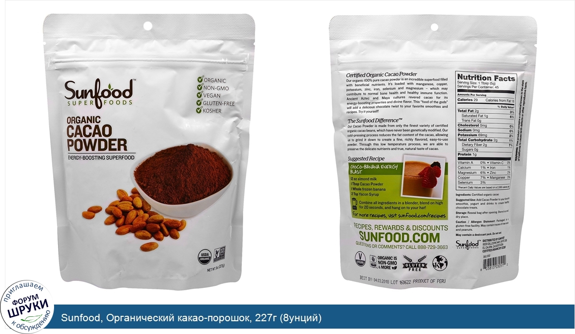 Друзья, если у вас есть отзыв/дополнение/комментарий/вопрос относительно Sunfood, Органический какао-порошок, 227г (8унций) - напишите его ответом в эту тему (это будет полезно всему сообществу в целом и вам в отдельности).