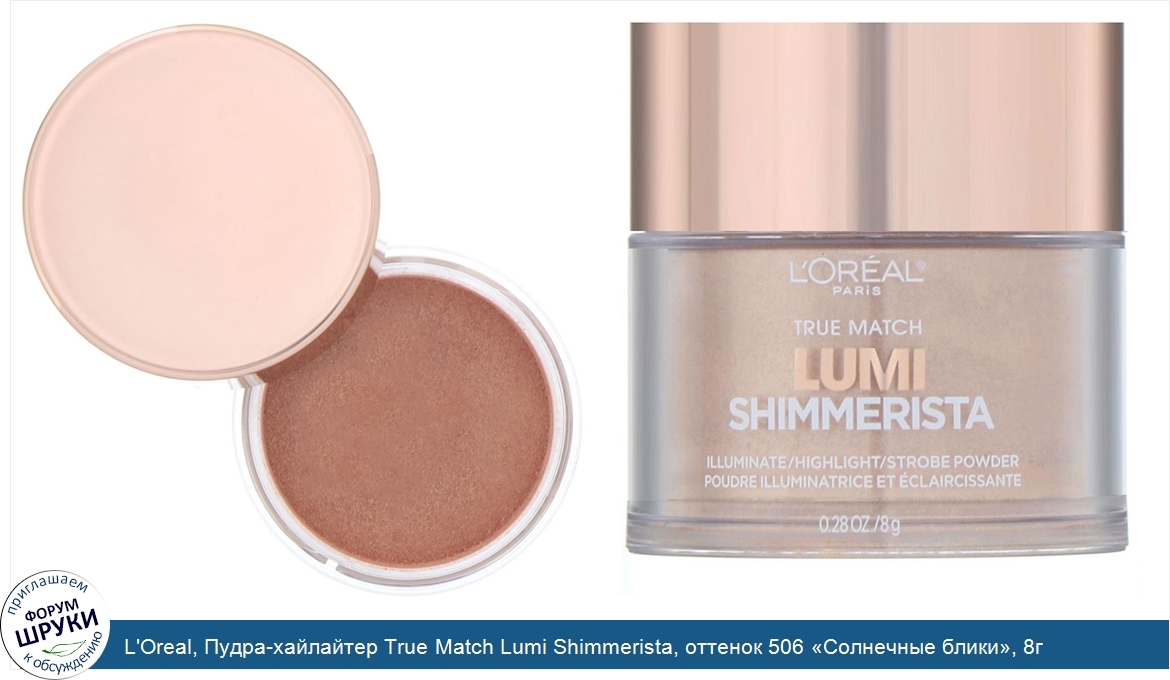 L'Oreal, Пудра-хайлайтер True Match Lumi Shimmerista, оттенок 506 «Солнечные блики», 8г