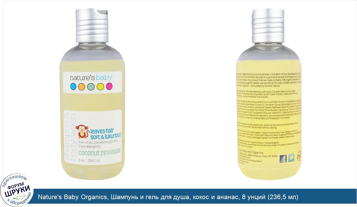 Друзья, если у вас есть отзыв/дополнение/комментарий/вопрос относительно Nature's Baby Organics, Шампунь и гель для душа, кокос и ананас, 8 унций (236,5 мл) - напишите его ответом в эту тему (это будет полезно всему сообществу в целом и вам в отдельности).