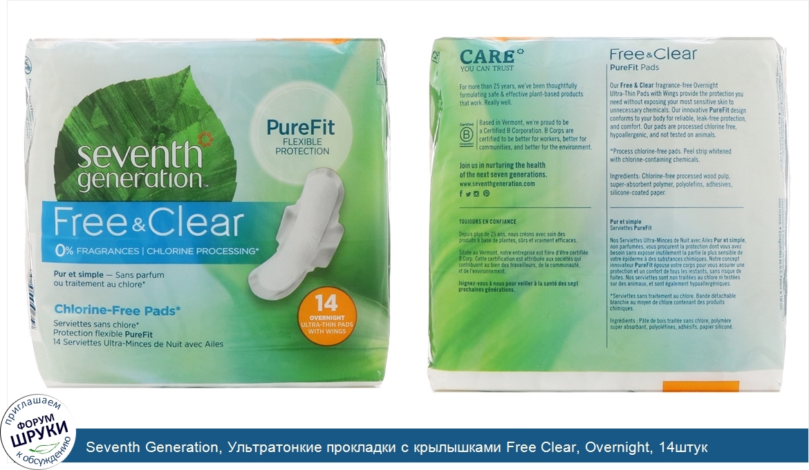 Друзья, если у вас есть отзыв/дополнение/комментарий/вопрос относительно Seventh Generation, Ультратонкие прокладки с крылышками Free Clear, Overnight, 14штук - напишите его ответом в эту тему (это будет полезно всему сообществу в целом и вам в отдельности).