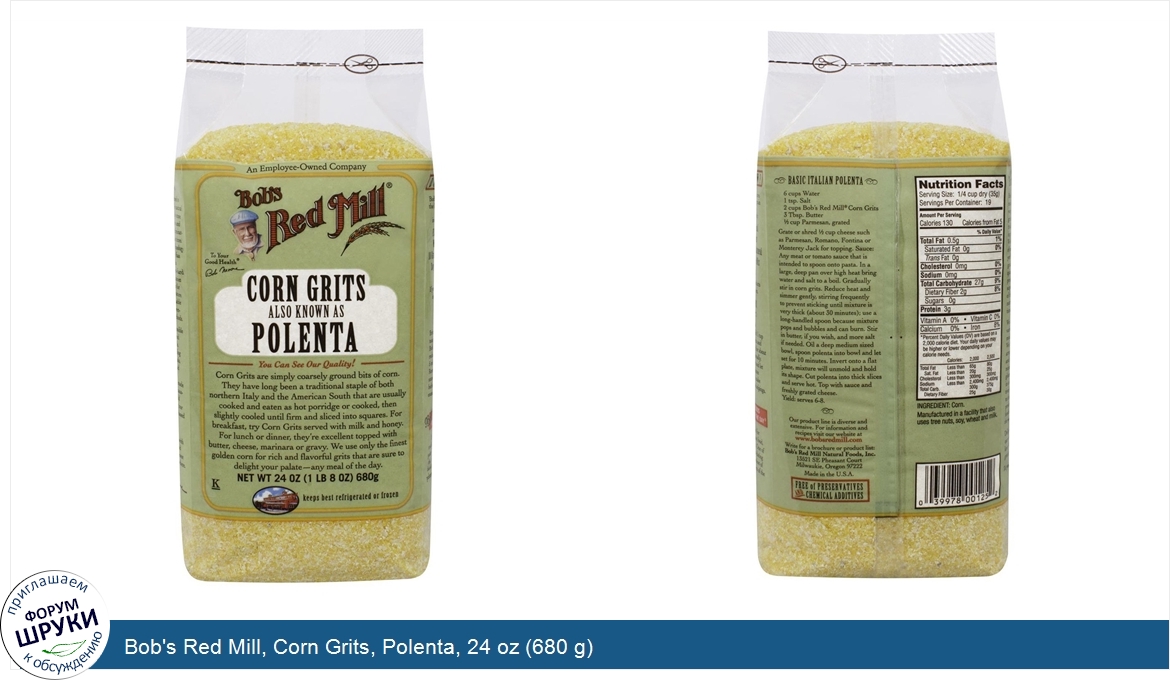 Друзья, если у вас есть отзыв/дополнение/комментарий/вопрос относительно Bob's Red Mill, Corn Grits, Polenta, 24 oz (680 g) - напишите его ответом в эту тему (это будет полезно всему сообществу в целом и вам в отдельности).