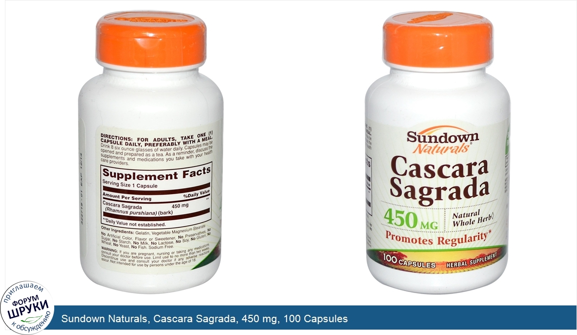 Друзья, если у вас есть отзыв/дополнение/комментарий/вопрос относительно Sundown Naturals, Cascara Sagrada, 450 mg, 100 Capsules - напишите его ответом в эту тему (это будет полезно всему сообществу в целом и вам в отдельности).