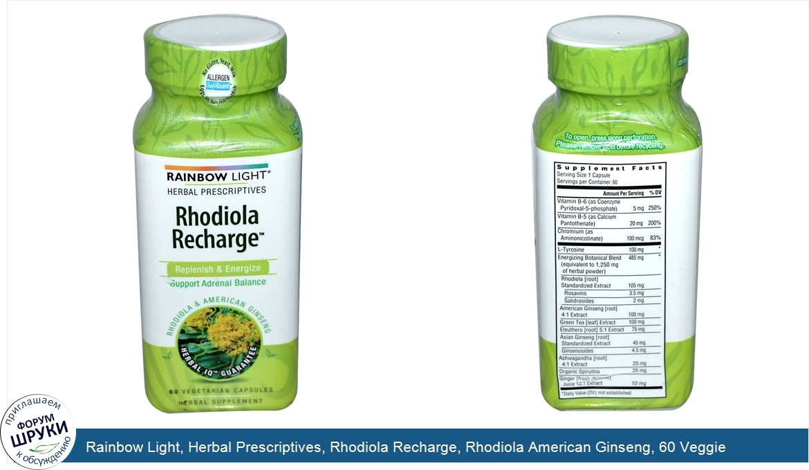 Друзья, если у вас есть отзыв/дополнение/комментарий/вопрос относительно Rainbow Light, Herbal Prescriptives, Rhodiola Recharge, Rhodiola American Ginseng, 60 Veggie Caps - напишите его ответом в эту тему (это будет полезно всему сообществу в целом и вам в отдельности).