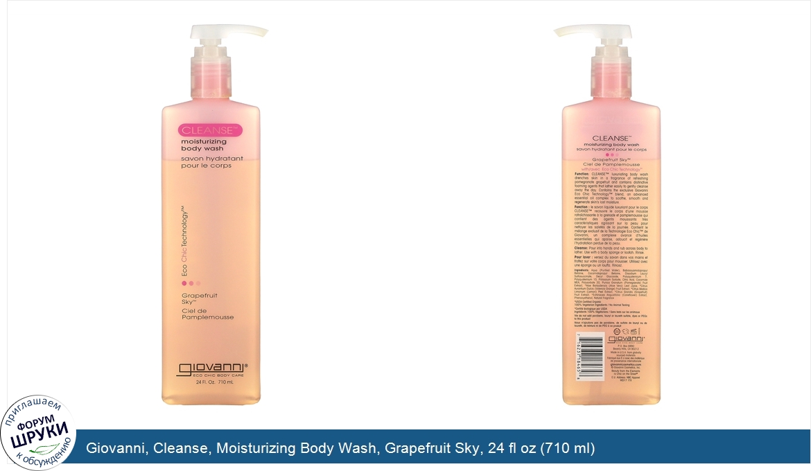 [DESCRIPT]Eco Chic Technology™. Eco Chic Body Care. 100% Vegetarian Ingredients / No Animal Testing. Leaping Bunny. Function: CLEANSE™ luxuriating body wash drenches skin in a fragrance of refreshing pomegranate grapefruit and contains distinctive foaming agents that lather easily to gently cleanse away the day. Contains the exclusive Giovanni Eco Chic Technology™ blend, an advanced essential oil complex to soothe, smooth and regenerate skin's lost moisture.[/DESCRIPT]... (описание дополняется)