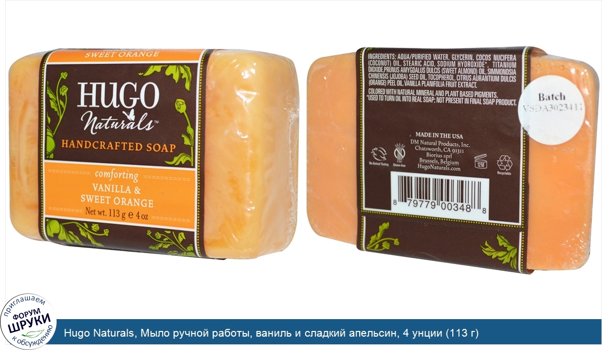Hugo Naturals, Мыло ручной работы, ваниль и сладкий апельсин, 4 унции (113 г)