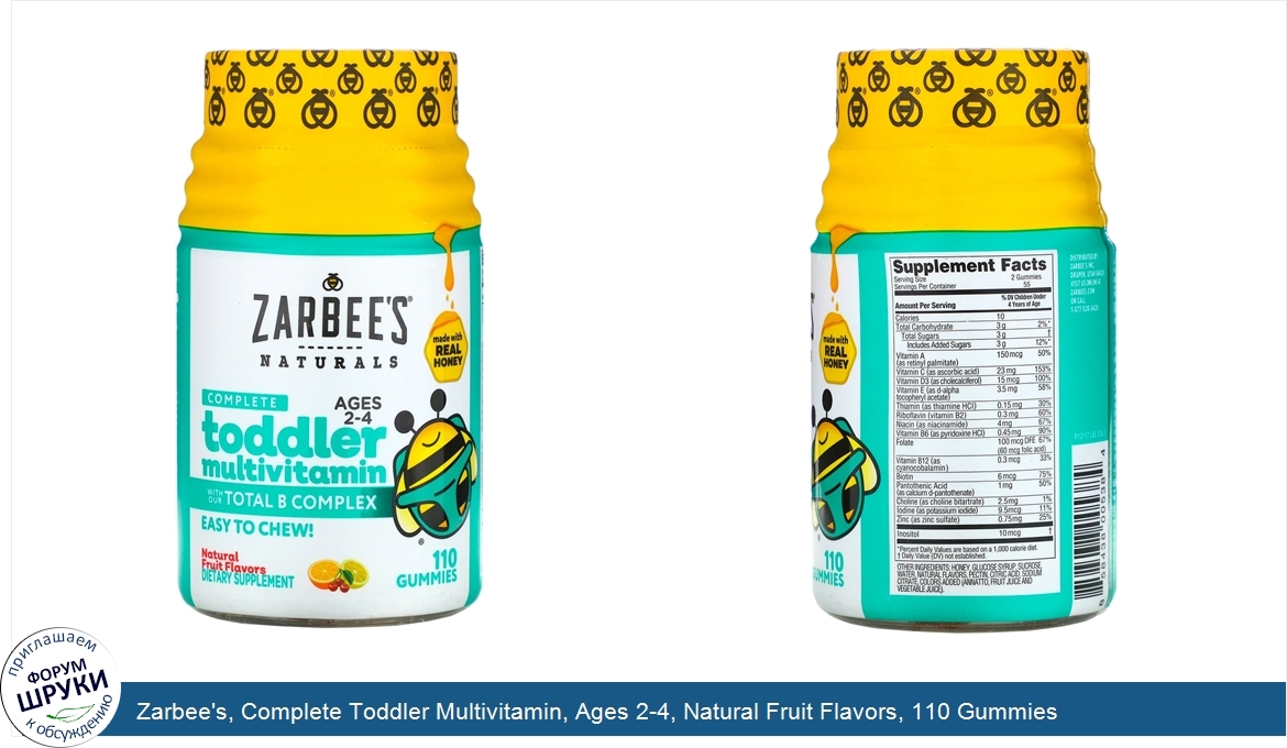 [DESCRIPT]Made with Real Honey. Ages 2-4. With Our Total B Complex. Easy to Chew! Dietary Supplement. Allergy Friendly. Wholesome Complete. Dr. Zak Zarbock, a pediatrician and father, couldn't find effective chemical-free products to keep the whole family healthy, so he created his own products, including handpicked natural ingredients, whenever possible. The results is Zarbee's Naturals. Excellent source of 13 essential vitamins minerals including A, C, D3 and our total B complex. Colors from natural sources. No High Fructose Corn Syrup. No Artificial Sweeteners. No Artificial Flavors. No Gelatin. Gluten Free.[/DESCRIPT]... (описание дополняется)