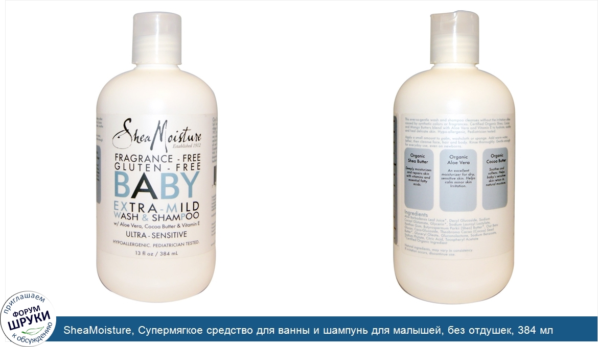Друзья, если у вас есть отзыв/дополнение/комментарий/вопрос относительно SheaMoisture, Супермягкое средство для ванны и шампунь для малышей, без отдушек, 384 мл - напишите его ответом в эту тему (это будет полезно всему сообществу в целом и вам в отдельности).