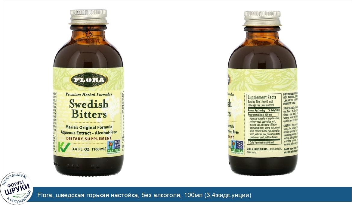 Flora, шведская горькая настойка, без алкоголя, 100мл (3,4жидк.унции)