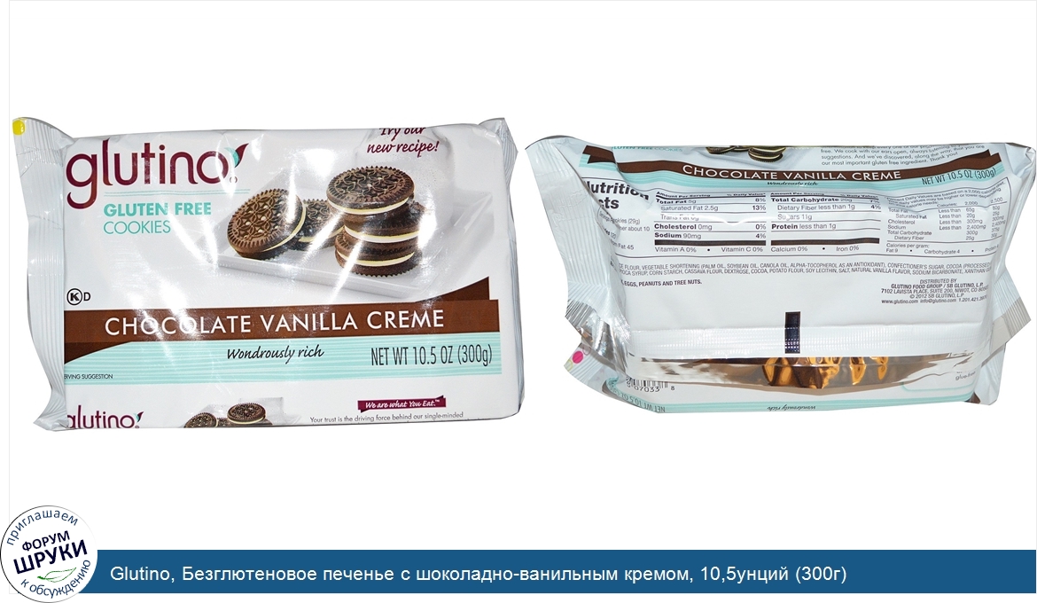 Glutino, Безглютеновое печенье с шоколадно-ванильным кремом, 10,5унций (300г)