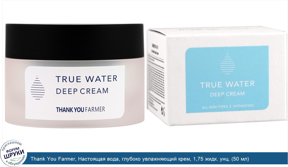 Друзья, если у вас есть отзыв/дополнение/комментарий/вопрос относительно Thank You Farmer, Настоящая вода, глубоко увлажняющий крем, 1,75 жидк. унц. (50 мл) - напишите его ответом в эту тему (это будет полезно всему сообществу в целом и вам в отдельности).