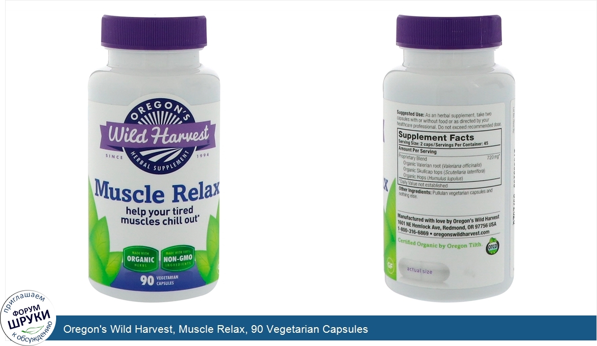 Oregon's Wild Harvest, Muscle Relax, 90 Vegetarian Capsules