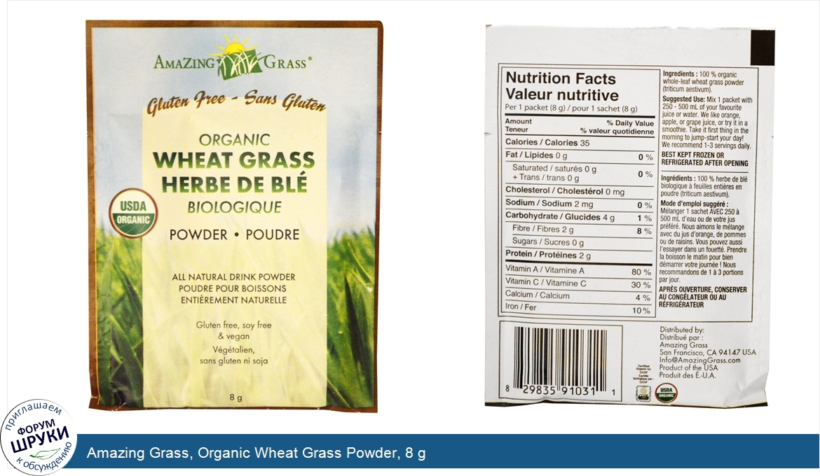 Amazing Grass, Organic Wheat Grass Powder, 8 g